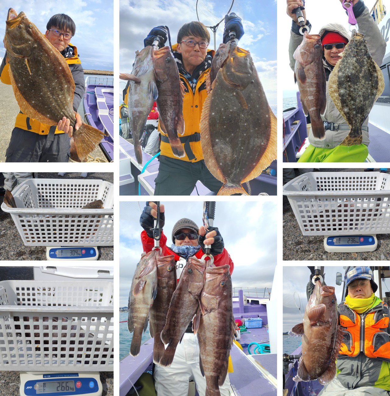 『2月釣り物ヒラメ船錘は、80号、100号乗船…