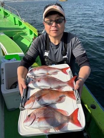 『マダイ乗合船。8名全員ゲットでトップ5枚…