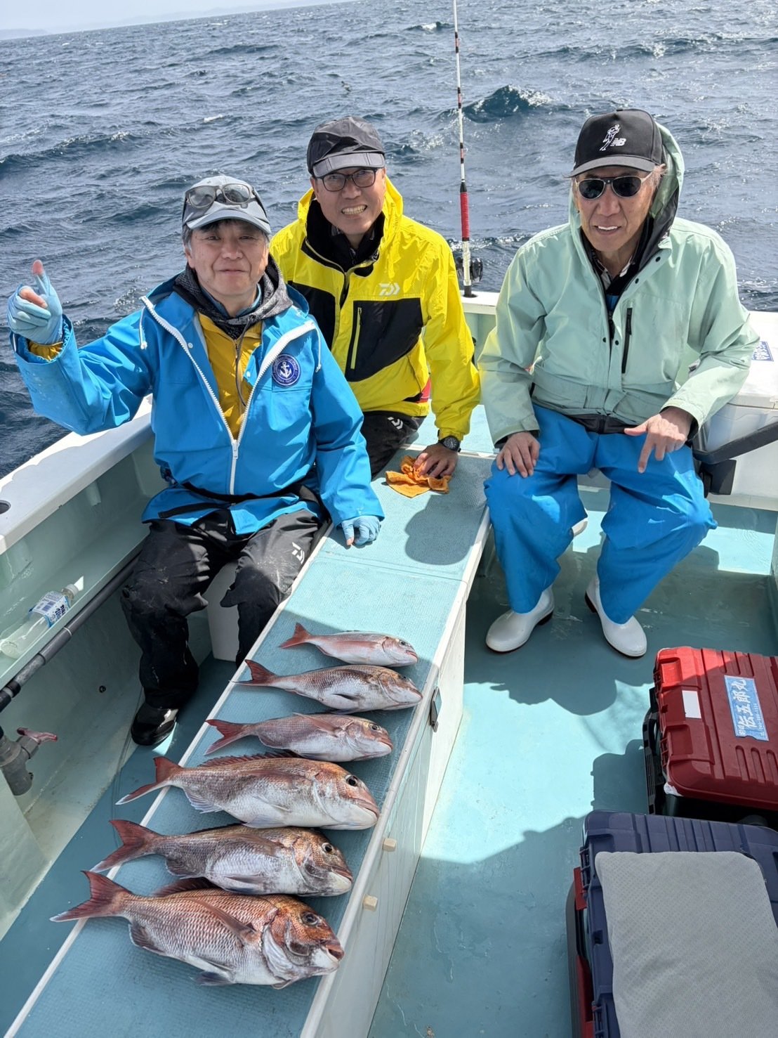 『今日は時化後でマダイ船。時化後でも、水温…