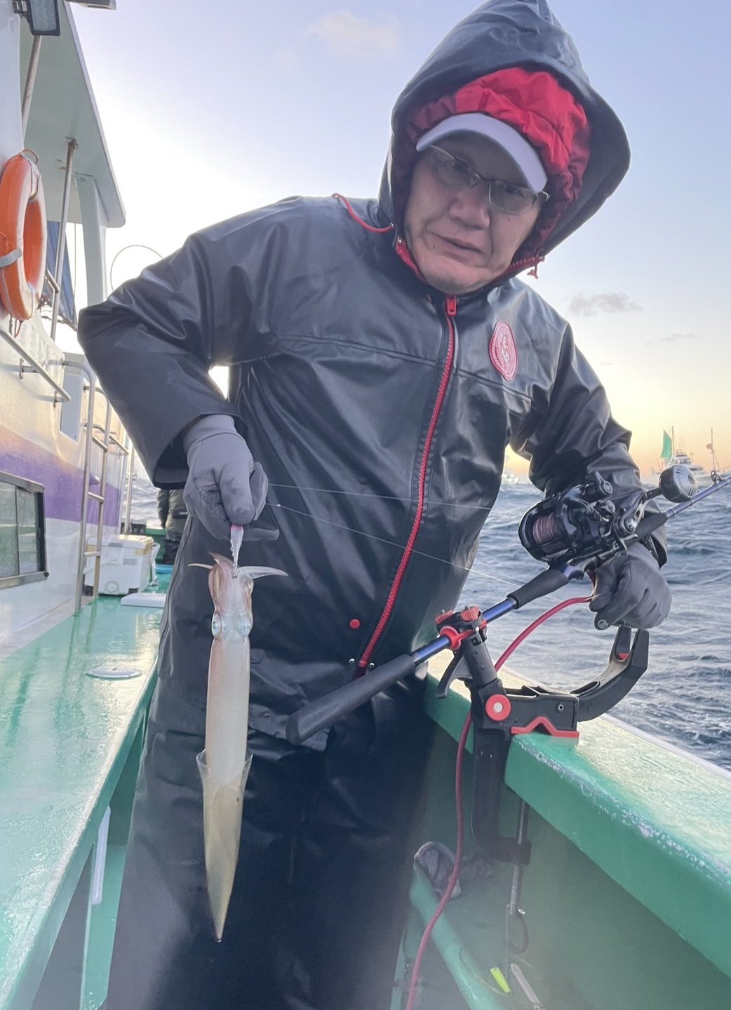 ヤリイカ船は風が強く釣難かったですがポツポツ掛かり数が上がりました。