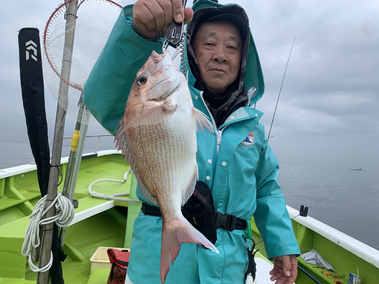 近頃の状況は好調なので期待して出船しましたが、当たりは多くなく、冷たい雨に我慢しながらの釣りでした。