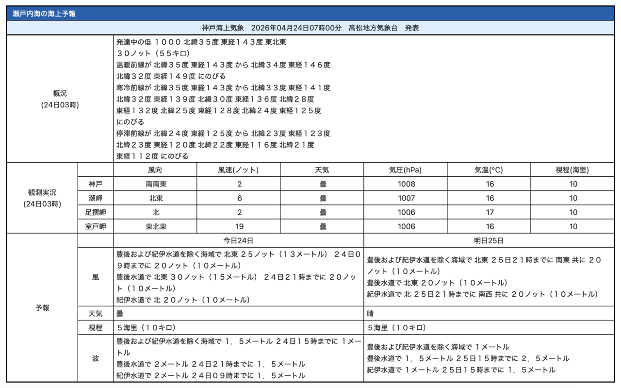 「海上予報:瀬戸内海」(気象庁)