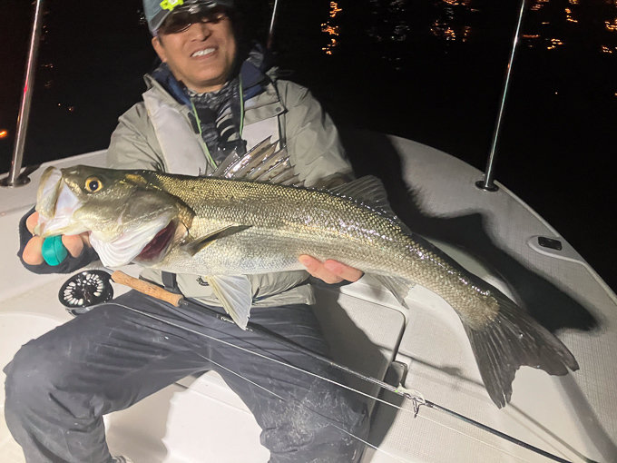 『夜、シーバスフライフィッシングで出船。…