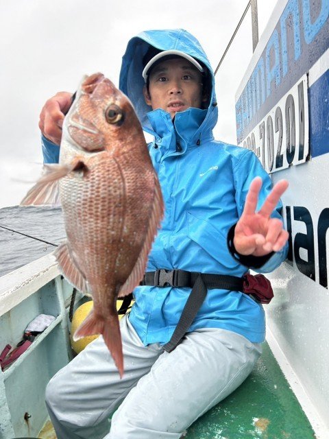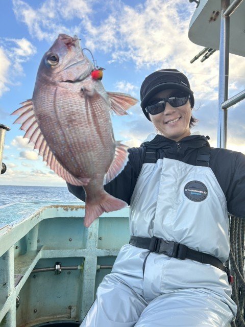 『午前船。真鯛船は水深7〜25m。日が…