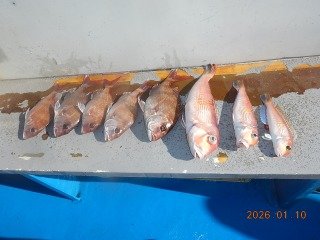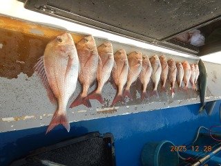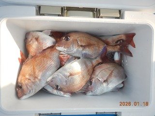 『朝船,、マダイ1.0k~0.5k、船中71枚、1…