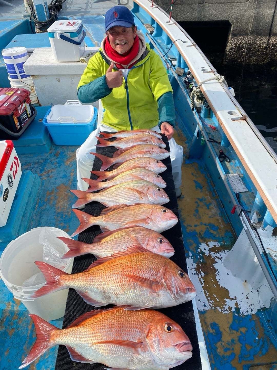 『今日のマダイ船。いやもう、笑っちゃうく…