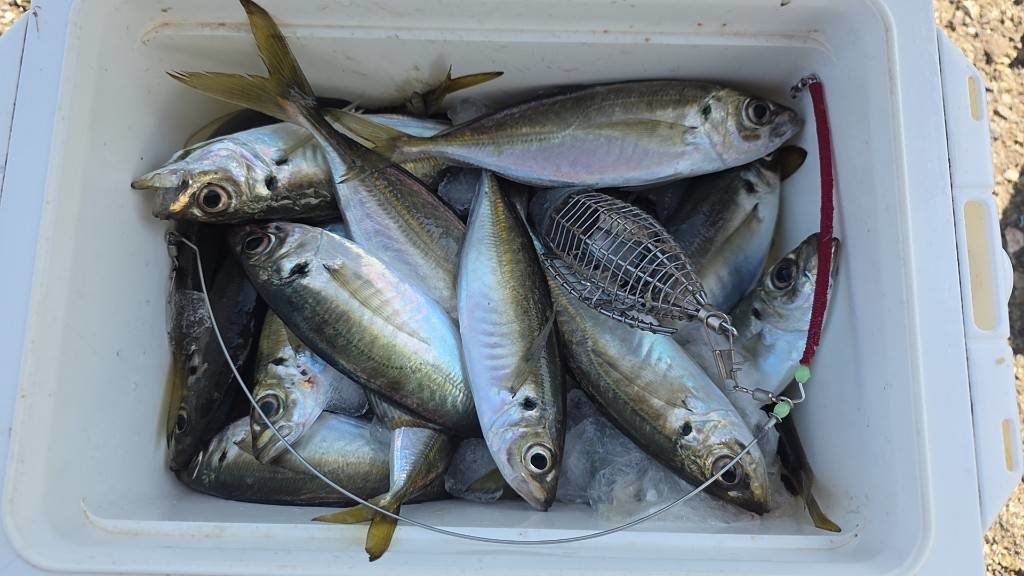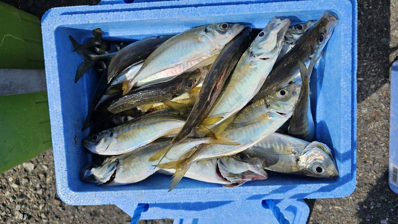 『今日は、アジ、小ぶり〜やや中型まじりで…