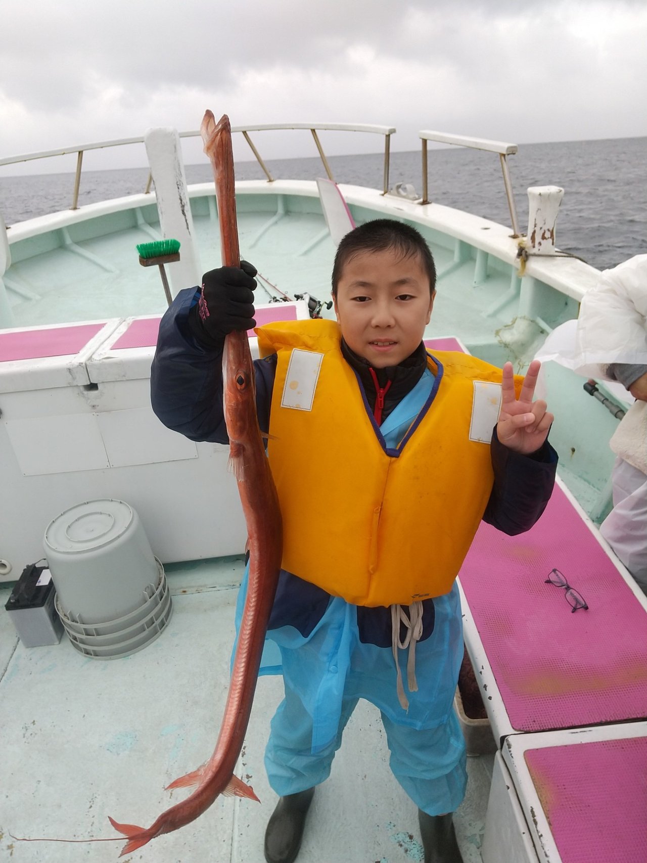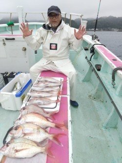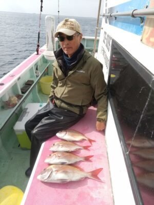 『マダイ船。潮も速くて二枚潮、仕掛けが安…
