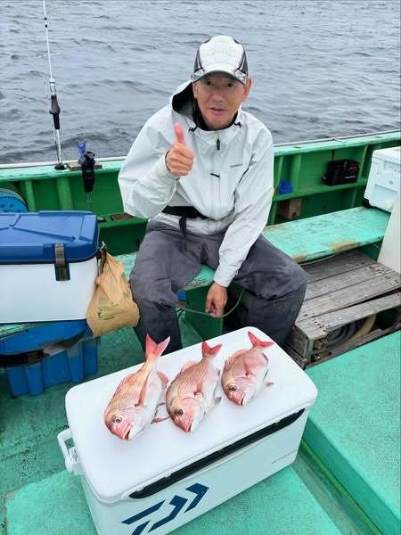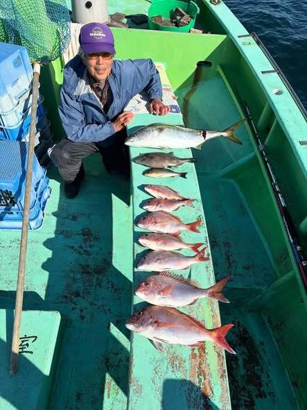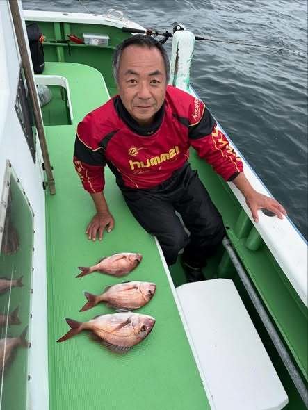 『コマセ真鯛船。潮の淀みなどにポツポツ当…