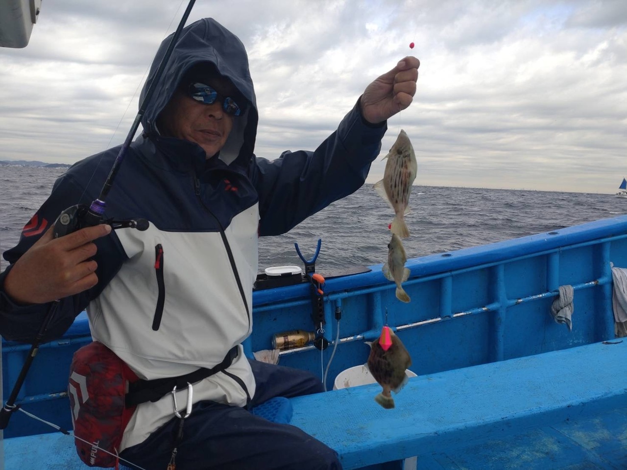 『カワハギ出船!朝から雨が降り肌寒い中、…