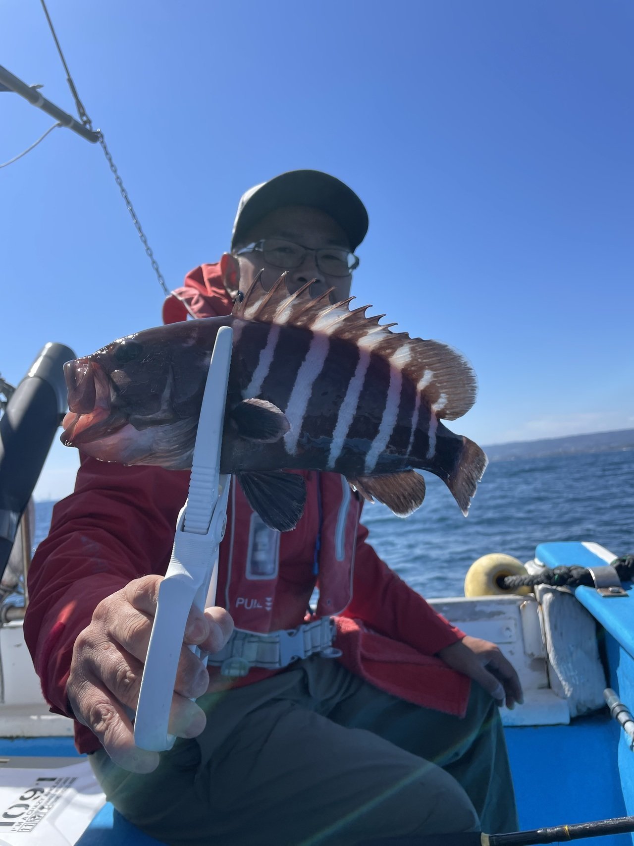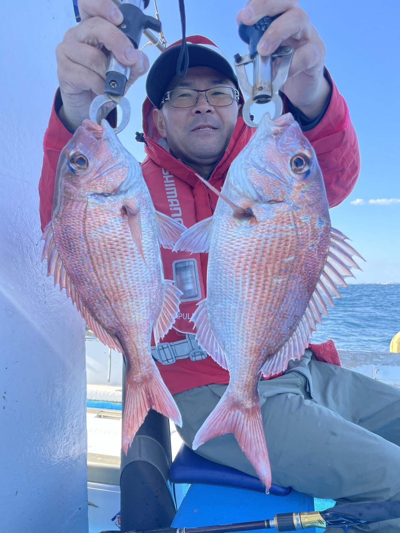 マダイ最大で2kgその他1.3kg、0.8kg、0.6kg...トップ10尾でした。マダイ0.3〜2kg1〜10尾。ゲストでカサゴ、マハタ、イナダ、ショウサイフグした。本日、乗船の皆様ありがとうございました。