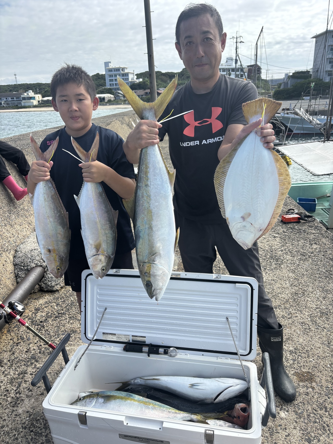 『ヒラマサ、カンパチ、ヒラメ、タイ、ヒラゴ、ネリゴ、コシナガ、ブリ、ヤズ、アコウ、他大漁でした。超大型のヒラマサあたり多数あるも18号ハリスラインブレイク。』