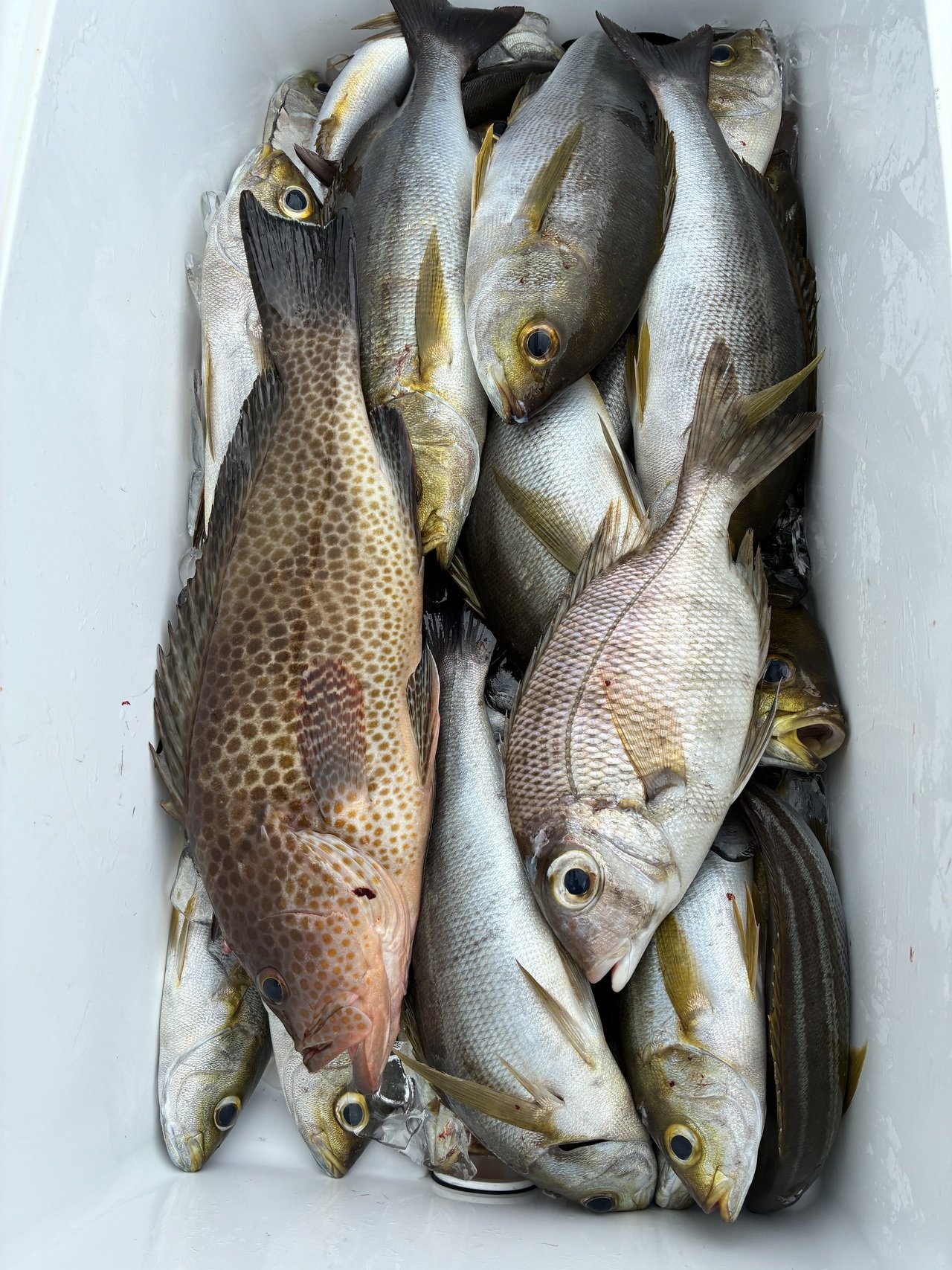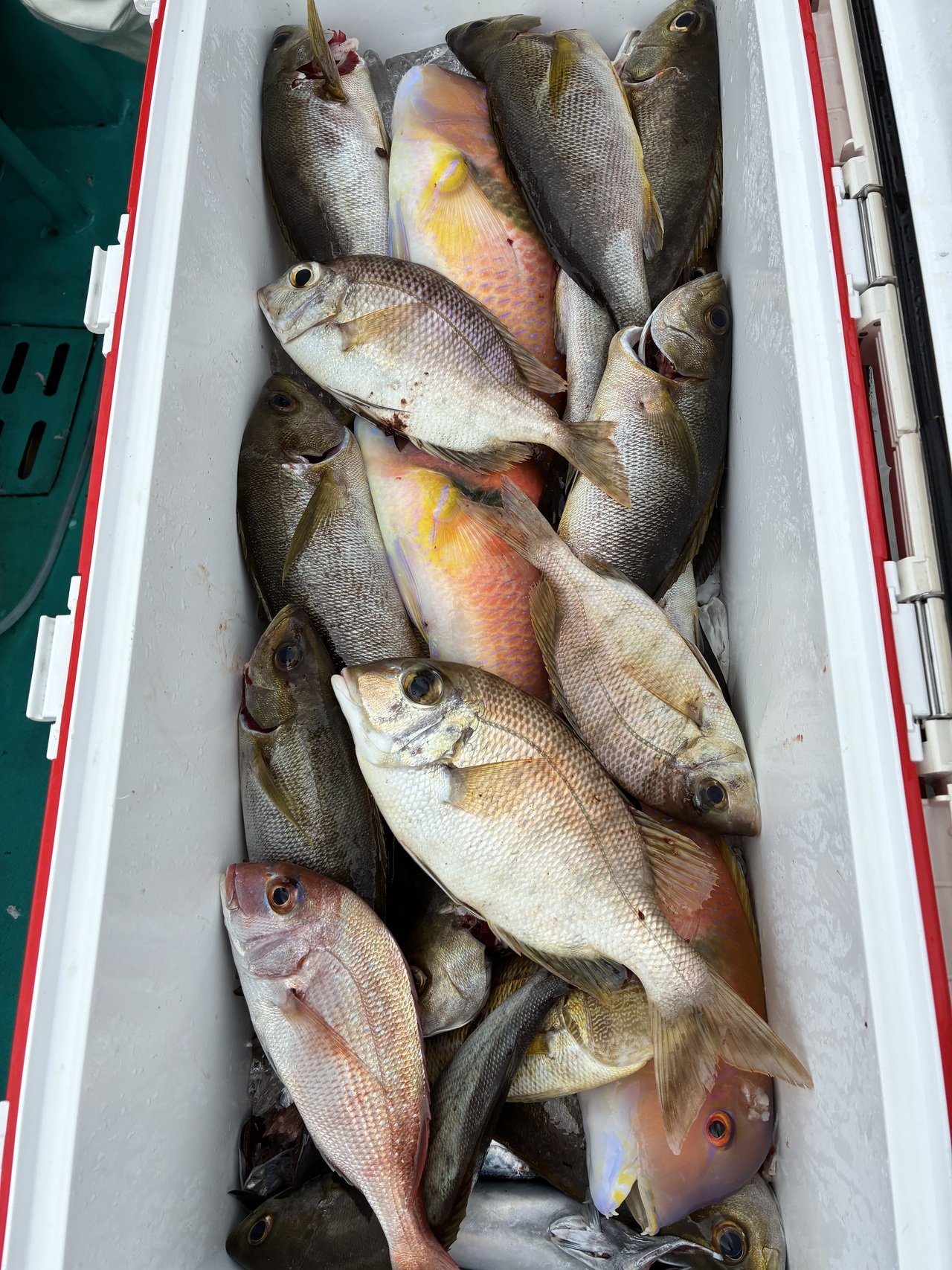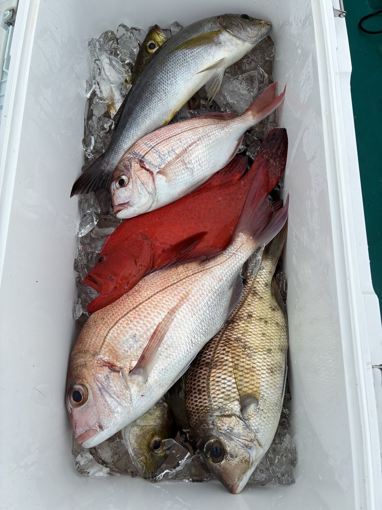 イサギは昨日より喰い渋めでしたが真鯛にメイチダイ、珍しいアザハタなど混じりで釣れました!