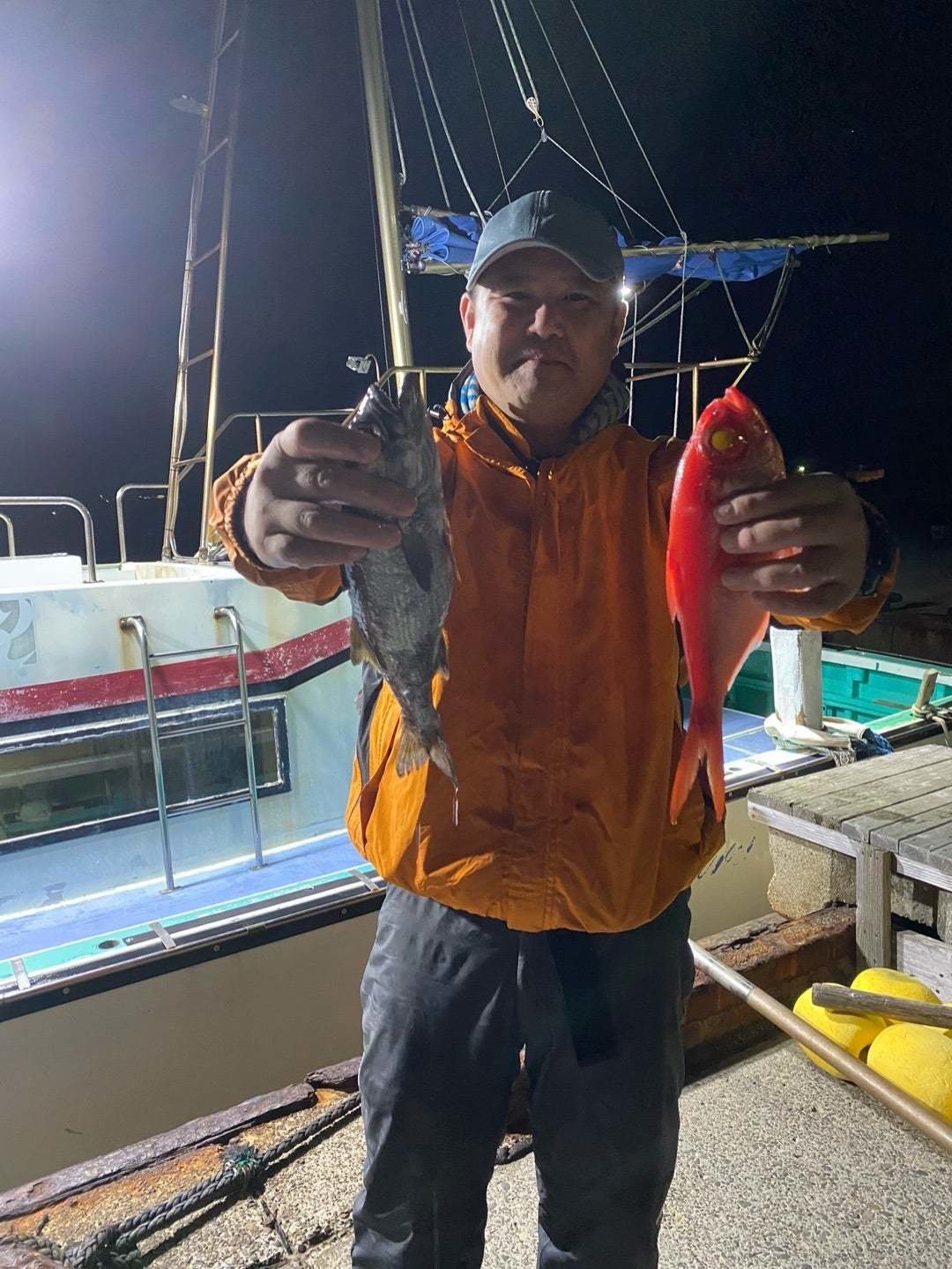 昨夜は久しぶりに半夜キンメ船に出船してまいり、昨夜は予報とはうって変わって、海上は風が強く、海も非常に悪く、非常に厳しい状況でしたが、黒ムツ君とキンメちゃんのミックスで元気良く顔を見せてくれ、昨夜は非常に厳しい状況でしたが、皆さん頑張っていただき、黒、キンミックスでおかずはバッチリ確保でしたよ〜!!!と、今日も張り切って出船したいところでしたが、今晩は予報悪く出船を見合わせることになってしまいました。残念です。