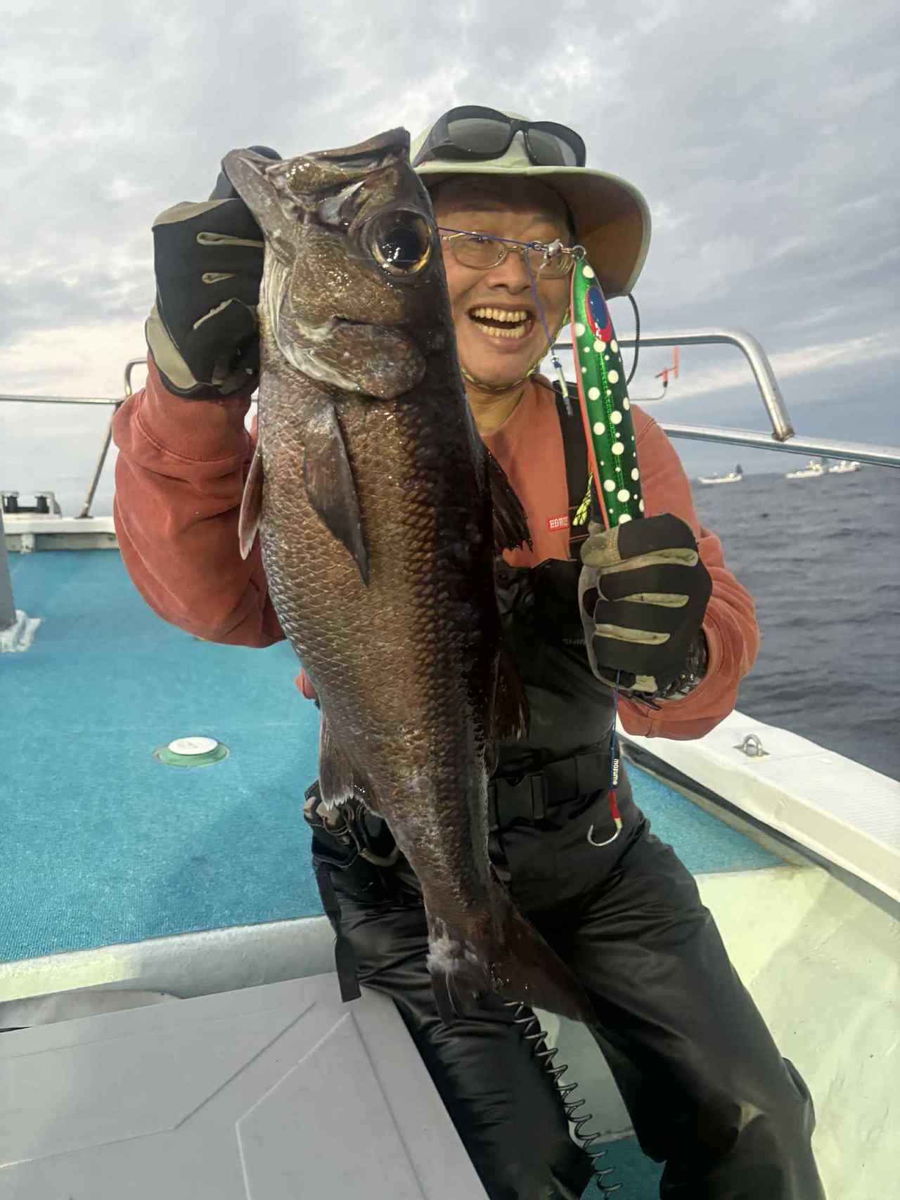 『金目ルアー、苦戦したが何とか顔見れました、黒ムツ混ざり。』