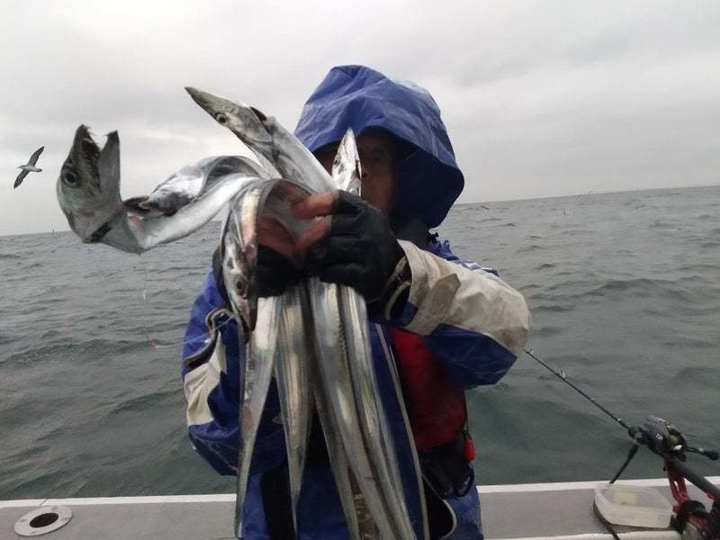 『タチウオ釣り。雨の中皆さん頑張ってタチウオgetでした。』