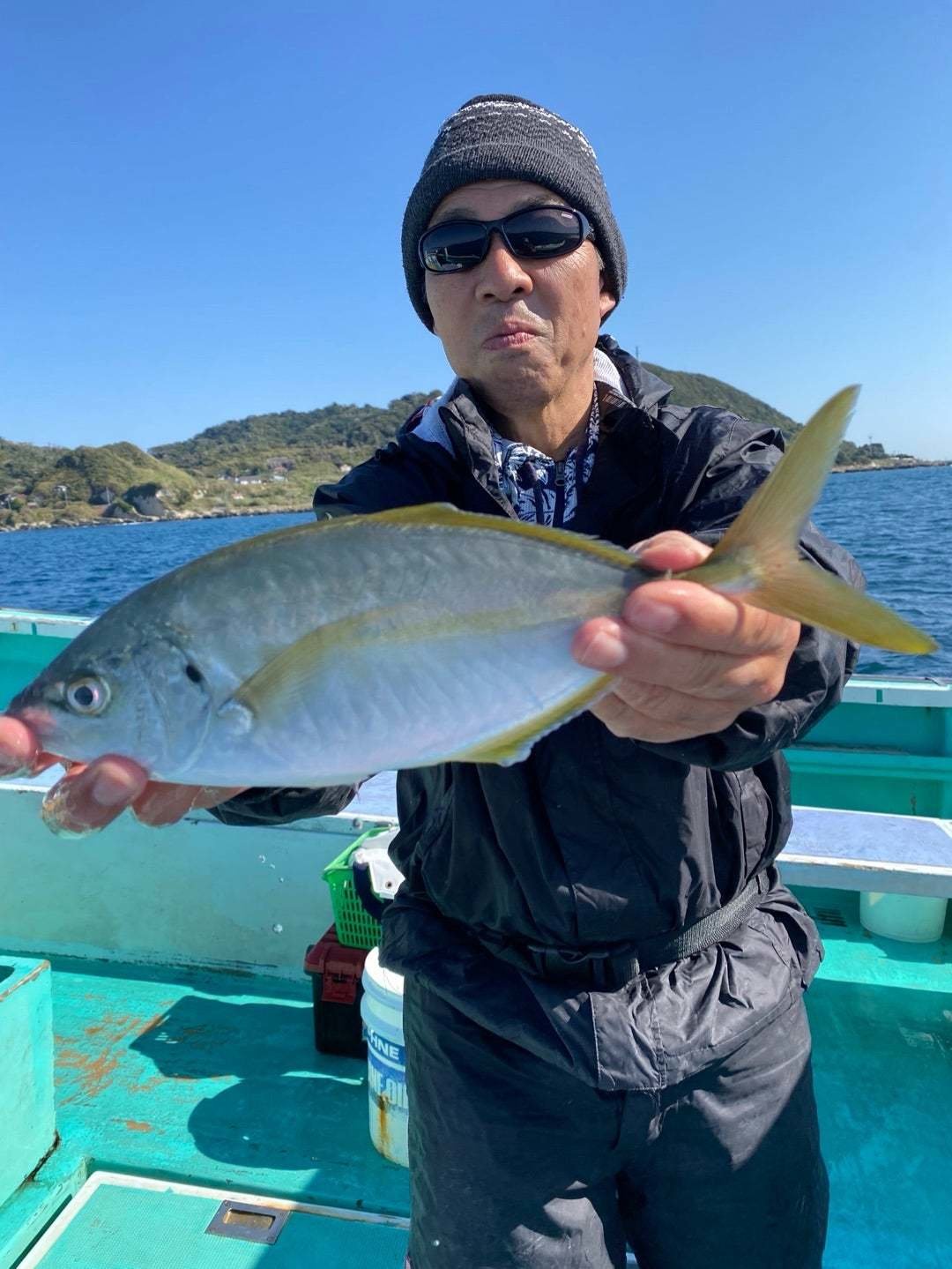 『今日は一日、お天道様もカンカンに海上も凪模様でシマアジ狙いに出船してまいり、潮の流れも良く、ときおり、シマちゃんのいいあたりも連発にありましたが、今日も皆さん、すっぽ抜けやハリス切れにやられてしまい、今日も非常に悔しく、シマちゃんに軍配が上がり、明日へのリベンジとなってしまいました。今日も他船では良型シマちゃんが捕獲されておりますので、明日こそは、と、気合を入れなおして頑張りたいところですね!!!