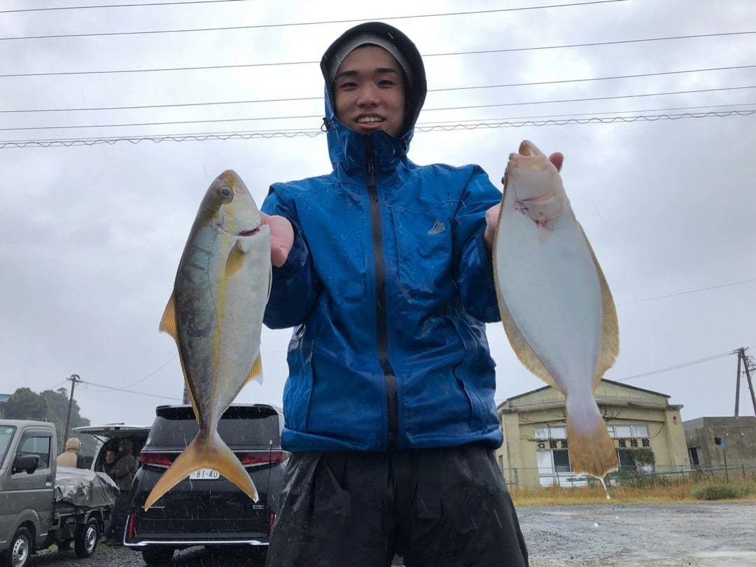 朝方うねりも高く1日雨降りでしたね、沖の方転々と周りながらヒラメとハマチ釣れてましたね!
