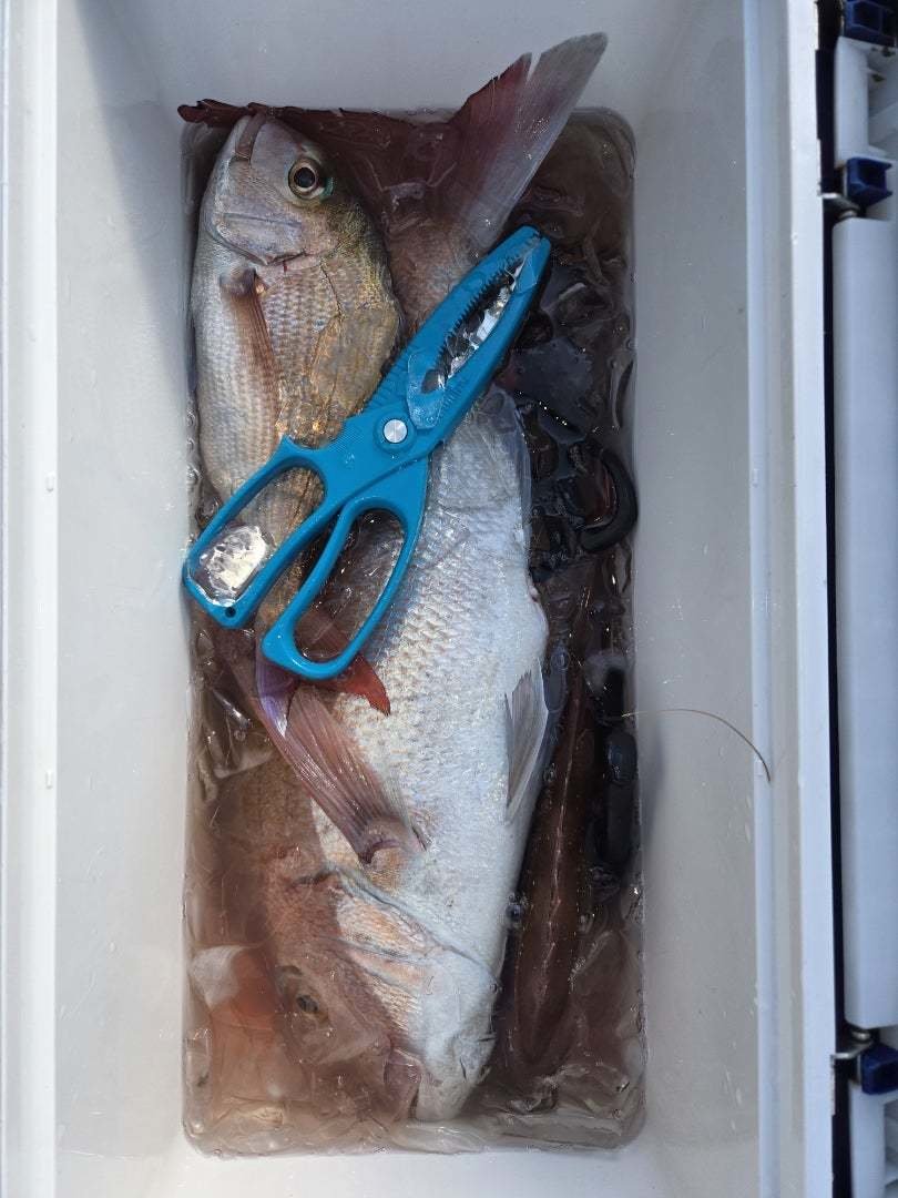 『午前マダイ船。マダイ、ハタ、カンダイ、カサゴ、ガンゾウビラメなどが釣れました。』