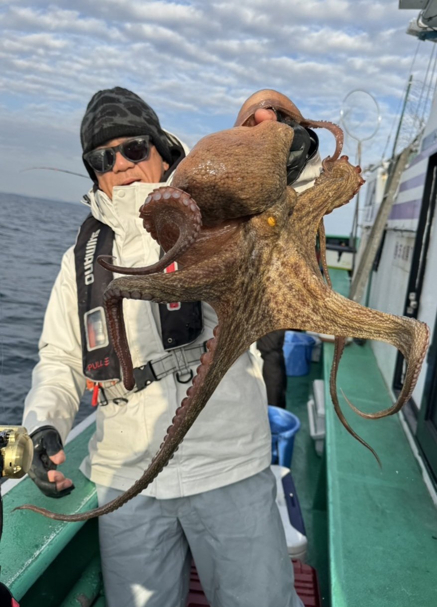 マダコ船は潮流れ悪くポツポツの乗りでした。