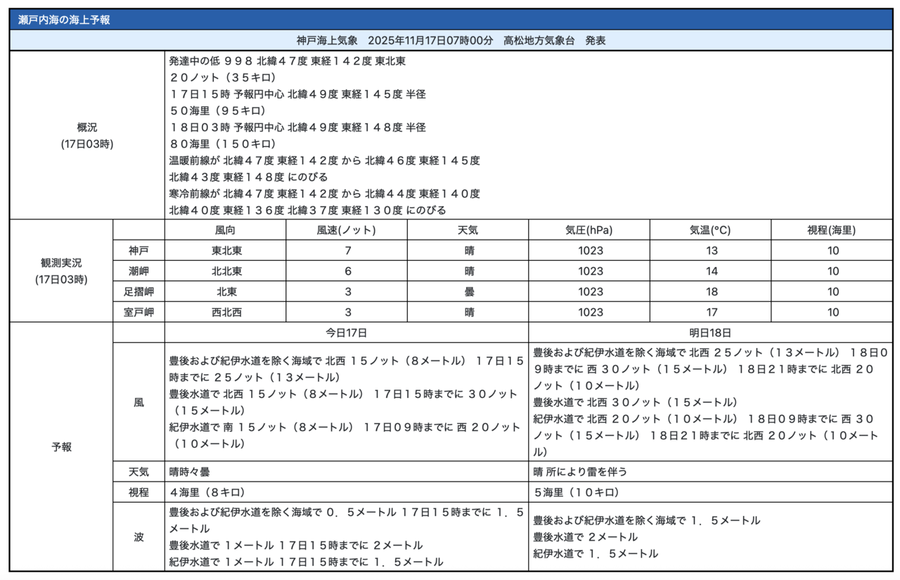 「海上予報:瀬戸内海」(気象庁)