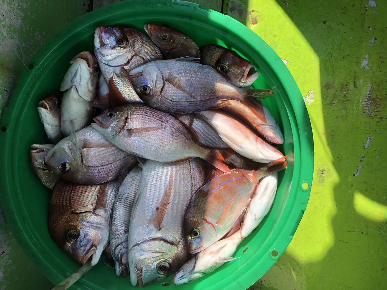 片貝沖30m大型花鯛ヒラメ狙う