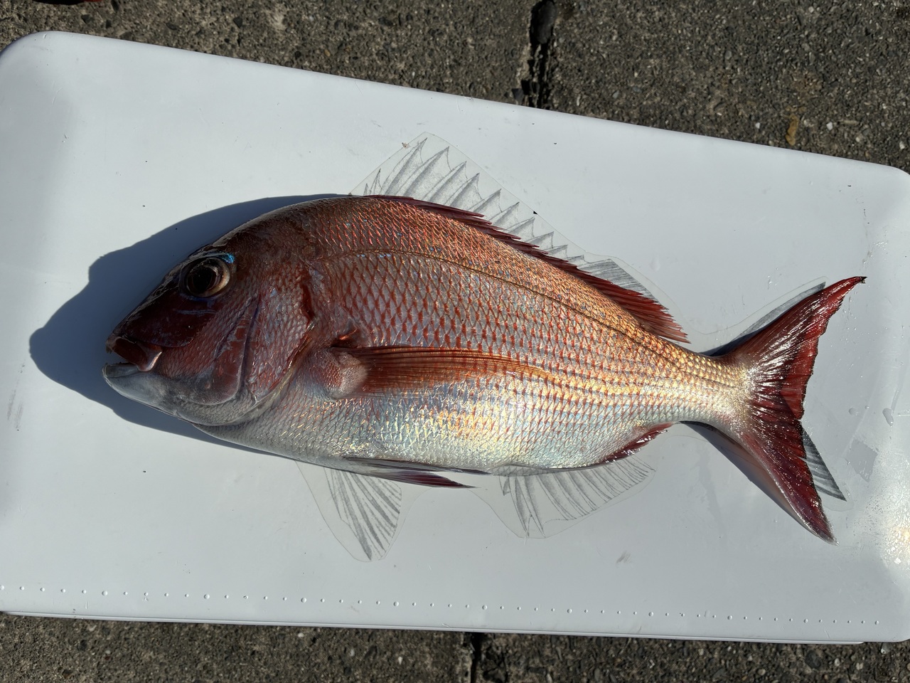 『クーラーの鯛の魚拓と