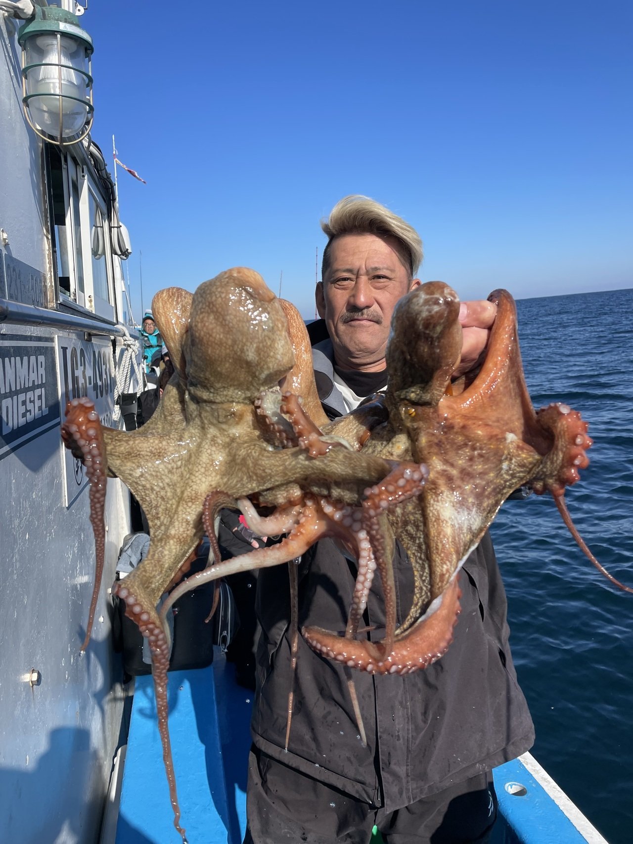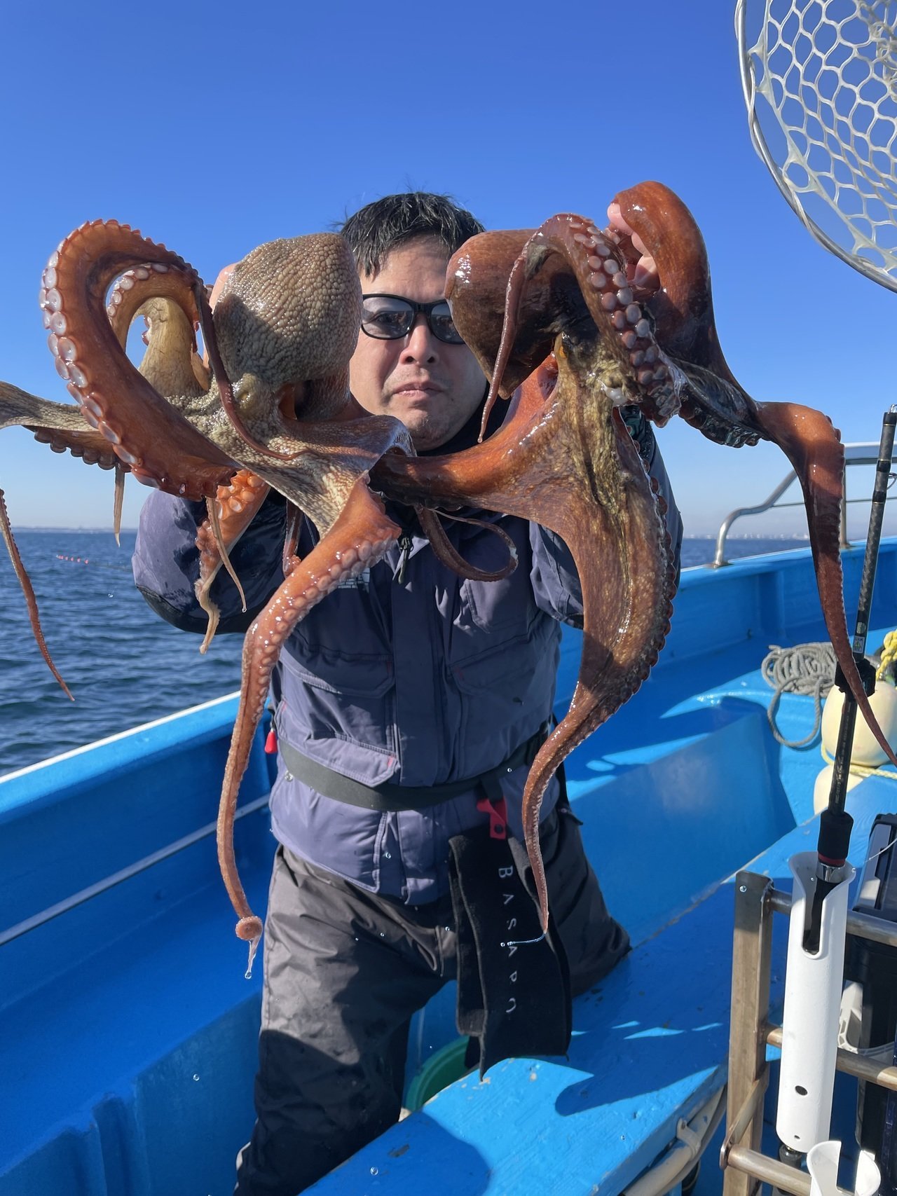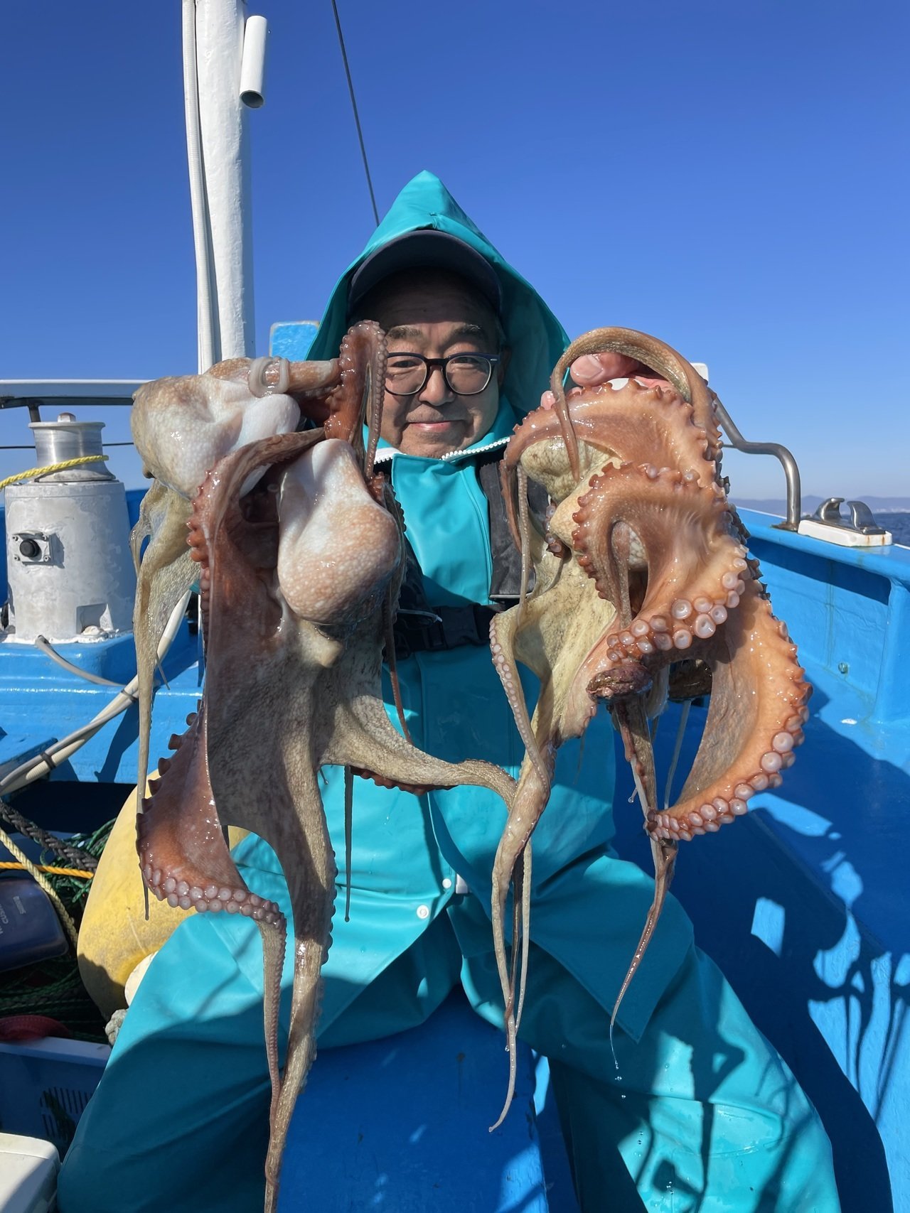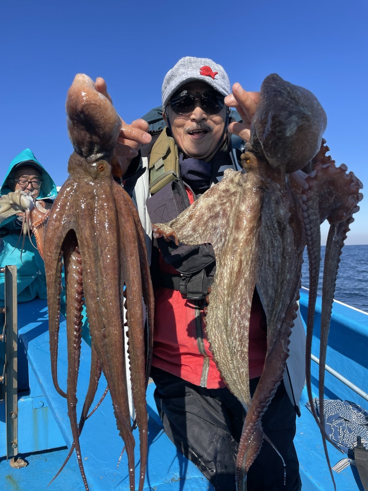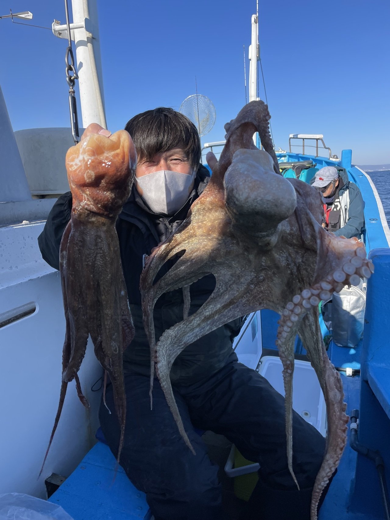 マダコ最大で2kgトップ6尾、1番手6尾2人、2番手5尾4人、3番手4尾でした。マダコ0.3〜2kg0〜6尾。本日、乗船の皆様ありがとうございました。