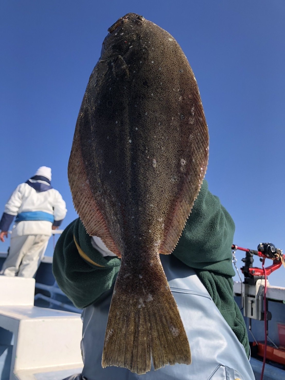 『今日は朝から潮流れず水色も濁り気味でヒラメの活性イマイチで中々厳しい状況でした。