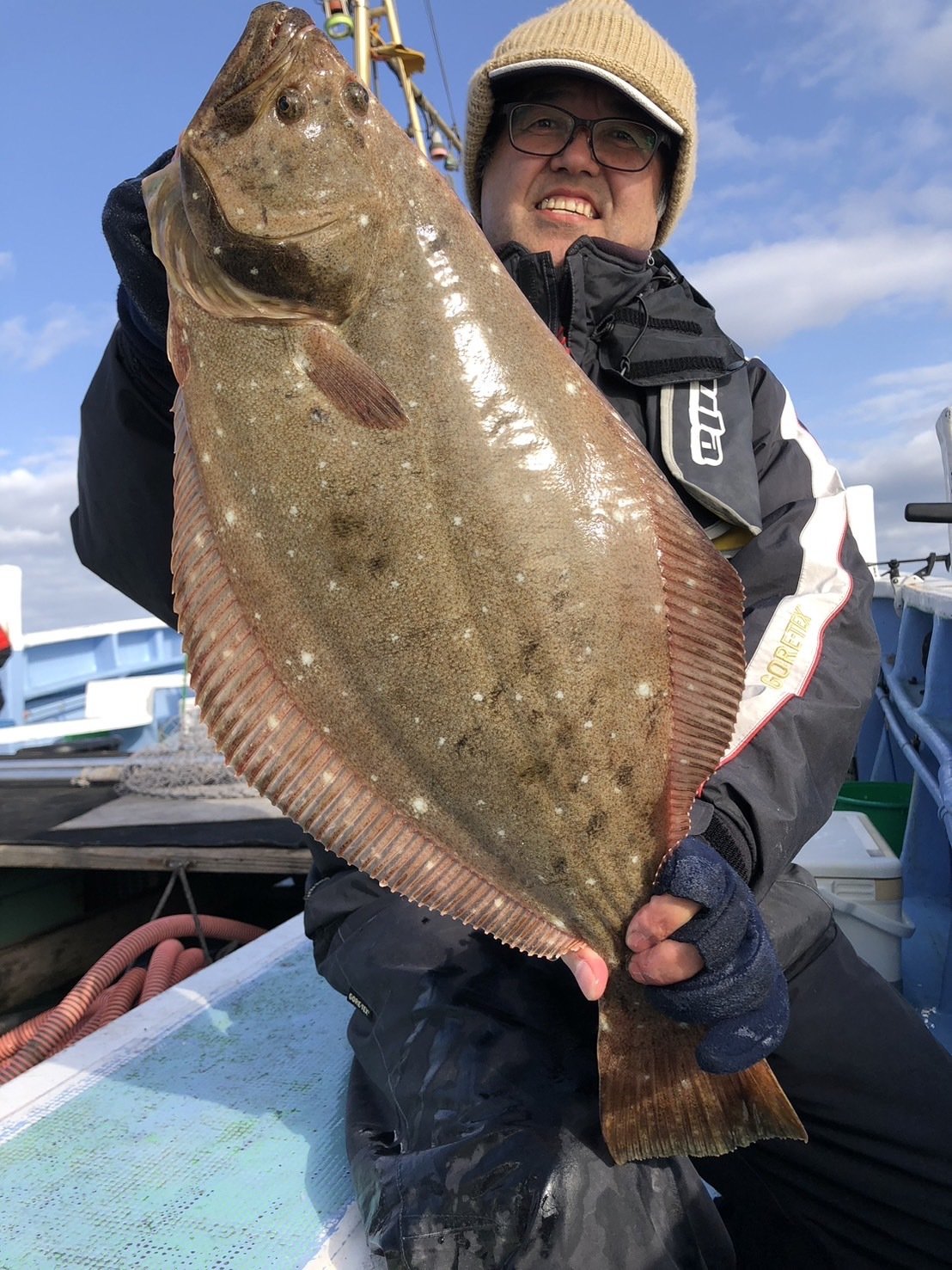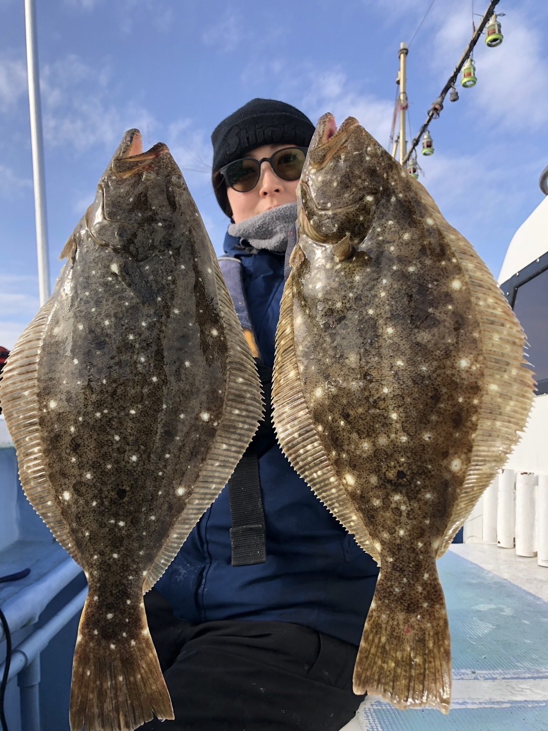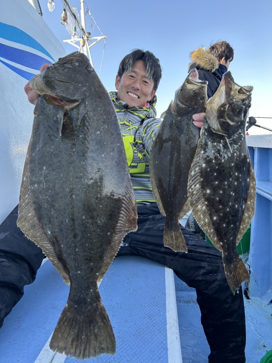 『今日は朝から風もあって潮流れもよく船の流れも良くてヒラメの活性高くポツポツ掛かりましたね!