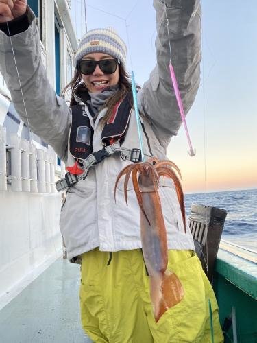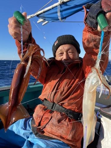 後半のスルメイカは今日は潮型が比較的に良く、朝からポツーリポツーリ!短時間ながら初挑戦者も顔見れて3杯〜トップ7杯。ヤリイカ少し混じり。
