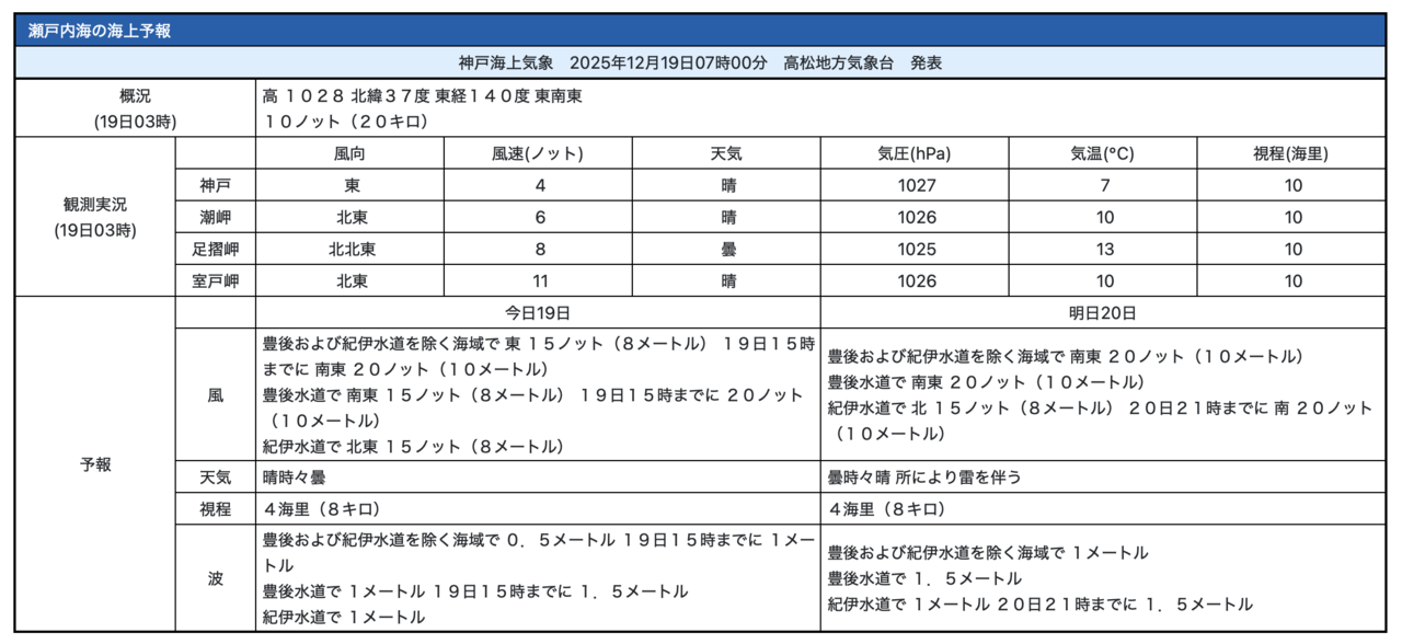 「海上予報:瀬戸内海」(気象庁)