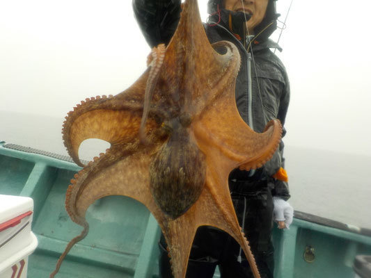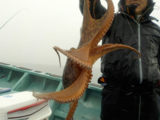 『今日は雨の中でも頑張って型の良いタコを釣っていました!』