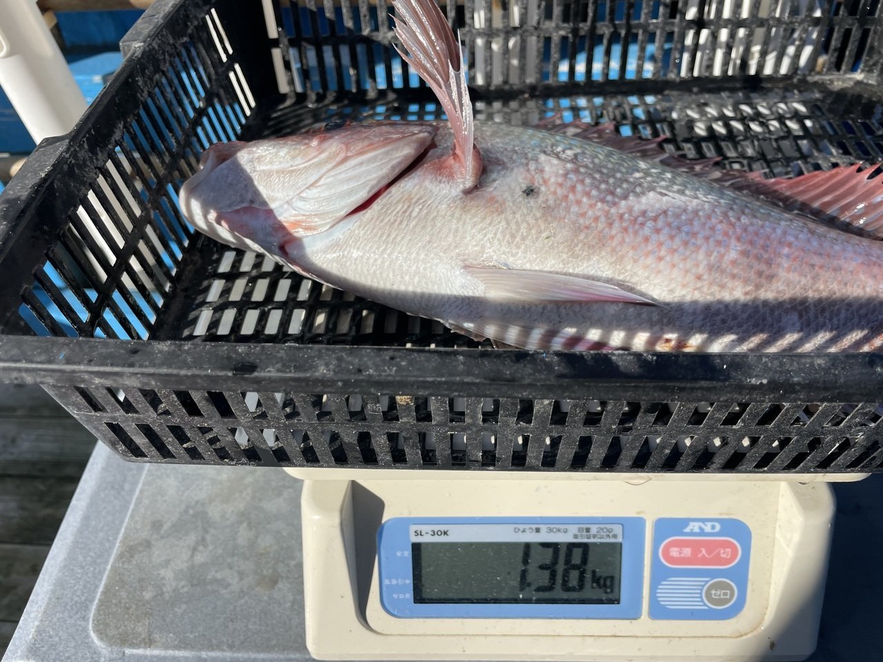 マダイ最大で1.38kgその他1.26kg、0.8kg、0.6kg...トップ5尾でした。マダイ0.3〜1.38kg0〜5尾。