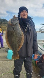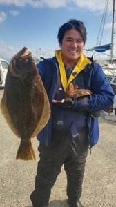 ヒラメ4時。(スズキ、カサゴ混)ヒラメ朝のうち潮流れ良く中盤から流れ止まり、のびイマイチでした。が、寒い中頑張ってくださりありがとうございました。