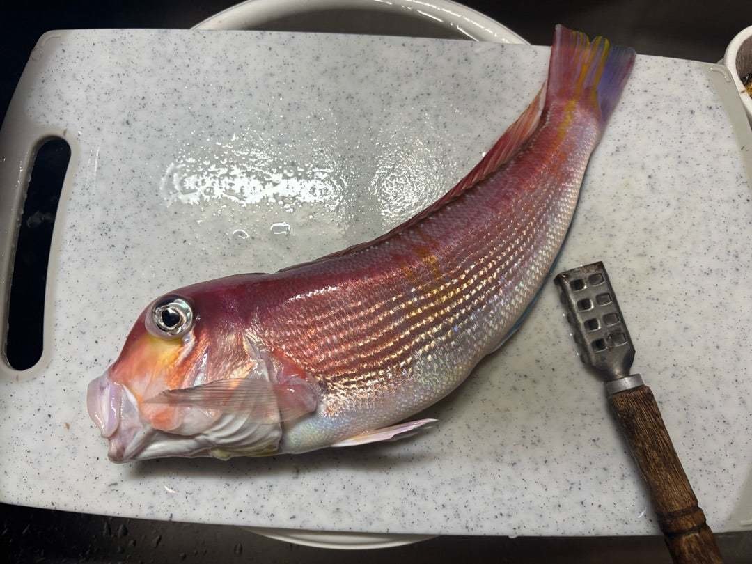 甘鯛はフライ2種にしてキダイは塩焼きガンゾウは粉つけて油へポン最高でした。