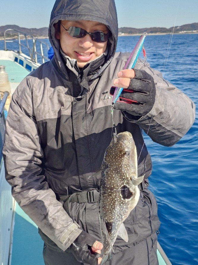 『AM青物ルアー船。また潮が明るくなったのか、サバっ気も減ってパンチ出ず。それでも時間いっぱいシャクリ倒して頂き、真鯛&虎河豚、引きずり出してくれましたが、青物&サワラ撃沈。』