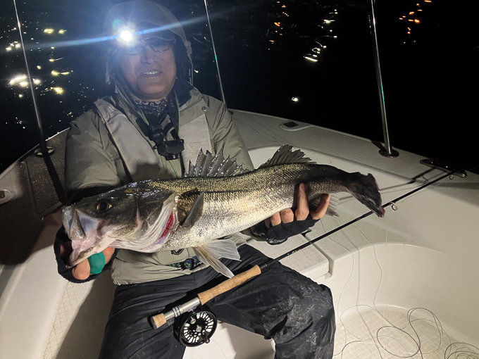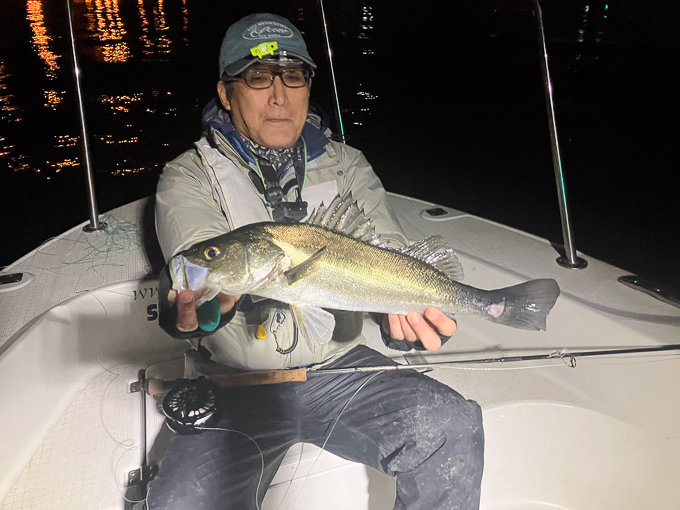 『夜、シーバスフライフィッシングで出船。