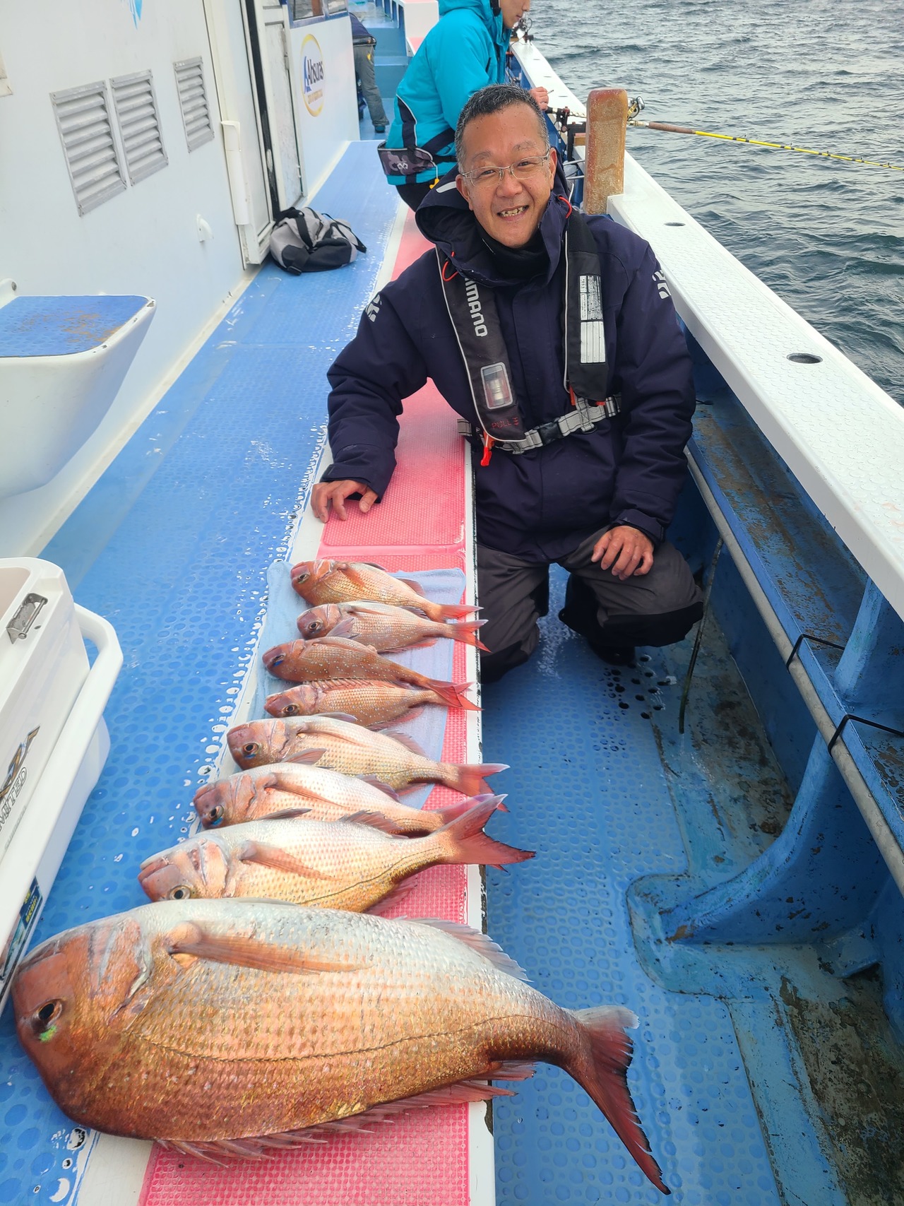 所々でバラシもかなりあり、ハリス切れもあったりしましたが全員マダイはゲットでき、トップは15枚!!