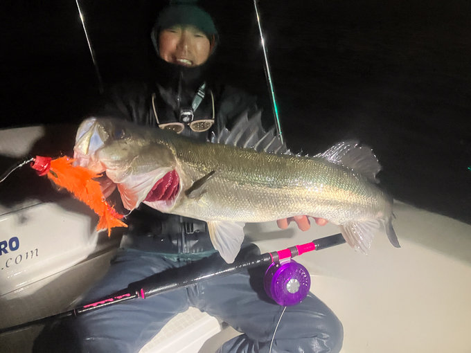 『夜、シーバスフライフィッシングで出船。