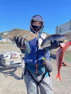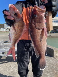 出船時刻に雪・・・風も強く寒かったですね〜沖は海も悪かったようです皆様寒い中有難うございました<(__)><(__)>渋々でした。美味しいお魚サンは最初から多点掛け有り入れ食いでした。手返し次第でいっぱい釣れた。後半のマダイ五目は水温低下でイサキは限られた方しか釣れない感じ。明日は黒ムツからでも五目釣りでもどちらでも良いお客様が1名おりますのでご予約お待ちしております。