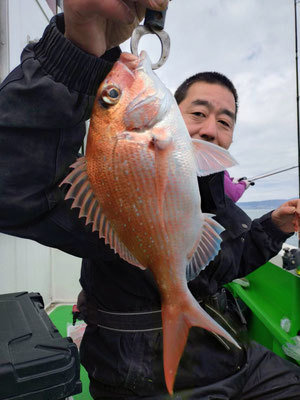 『明日は中止で明後日からまたテンヤ真鯛釣りに出船します。週末のご予約お早めに。平日も毎日テンヤ真鯛釣りに出船します。早めのご予約ありがたいです。』