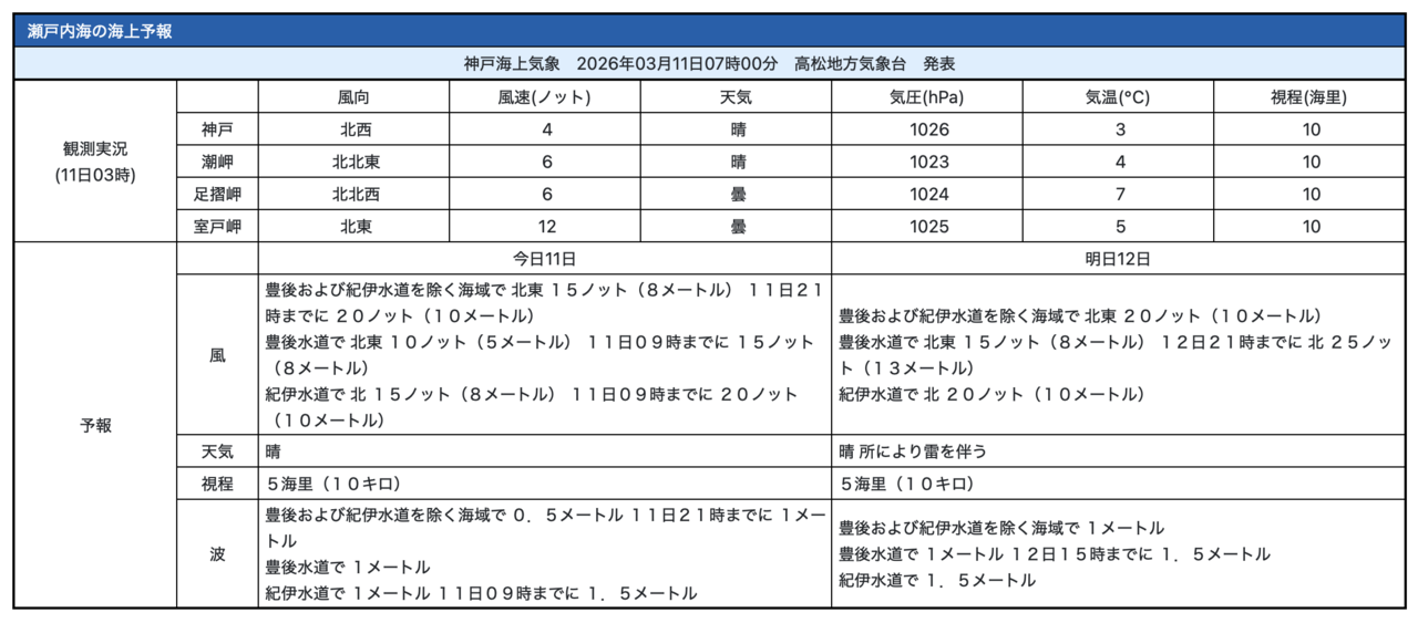 「海上予報:瀬戸内海」(気象庁)