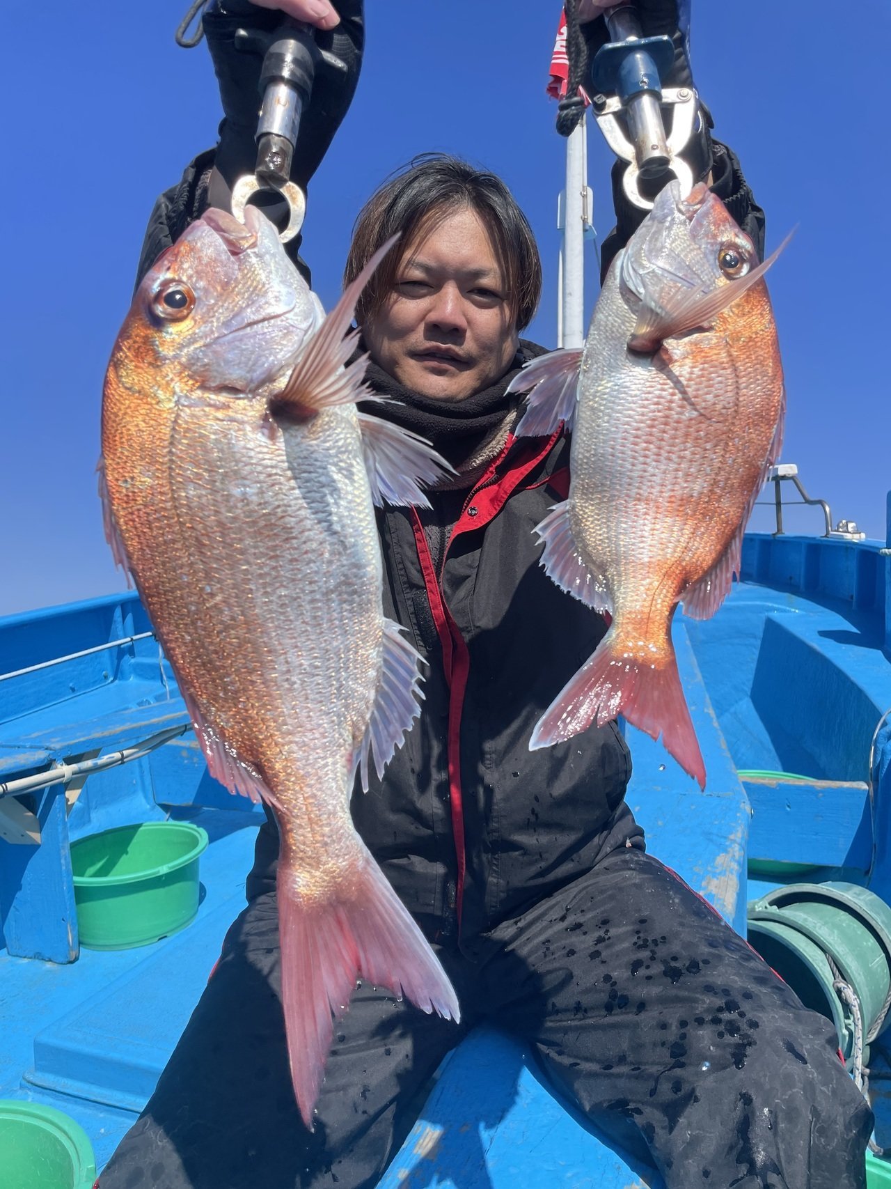 マダイ最大で1.62kgその他1.38kg、0.7kg、トップ4尾でした。マダイ0.5〜1.62kg0〜4尾。ハナダイ25〜30cm1〜4尾。イナダ1kg〜2kg0〜5尾。ゲストでマハタ、カンコ、メバル、オニカサゴ、ホウボウ、イナダ、ハナダイ、ムシガレイでした。本日、乗船の皆様ありがとうございました。