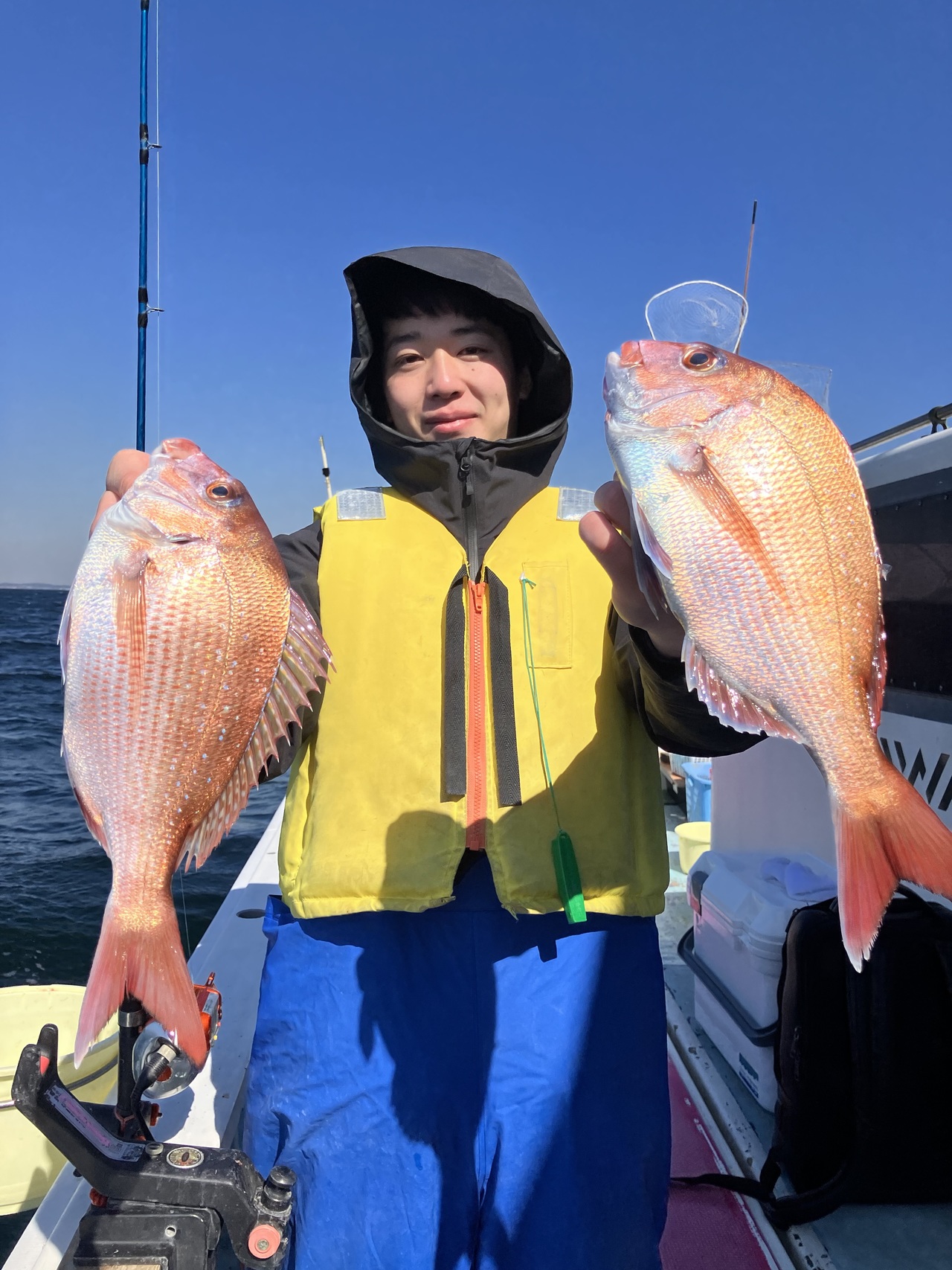 朝一から連発でマダイがヒット!