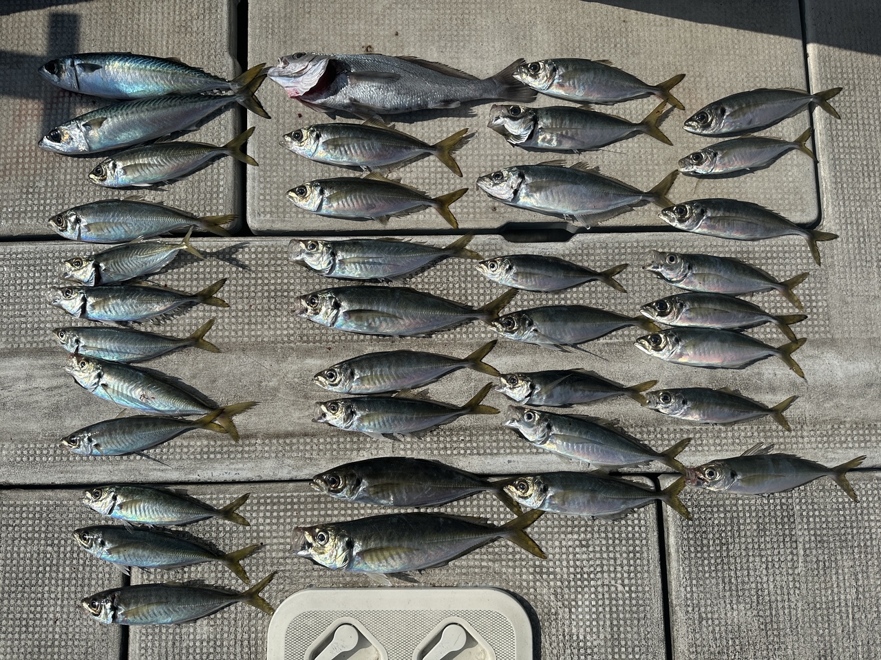 アジ34匹!大きいサイズで約42cm