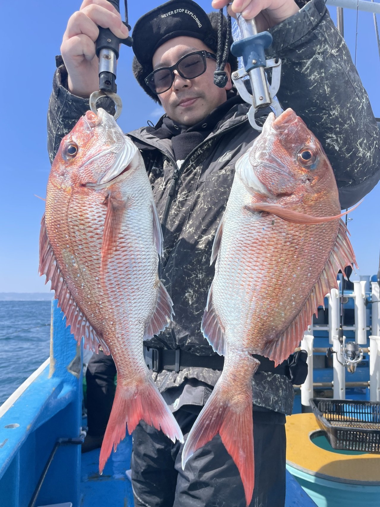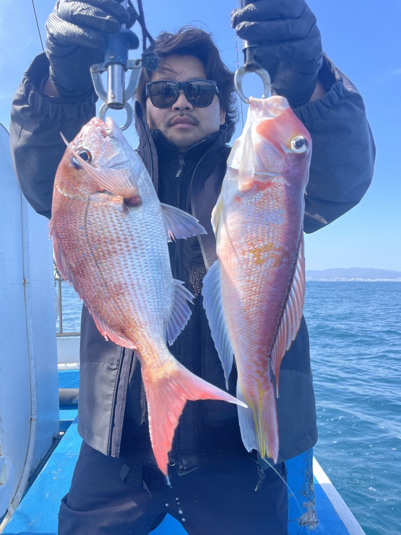 マダイ最大で1.46kgその他1.4kg、1.38kg、1.1kg、1kg、0.8kg、0.6kg...トップ2尾でした。マダイ0.5〜1.46kg0〜2尾。ハナダイ25〜30cm0〜2尾。ゲストでアマダイ、メバル、ワラサ、ハナダイ、ムシガレイでした。本日、乗船の皆様ありがとうございました。