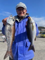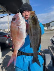 黒ムツは型見た程度で、早めに行った美味しいお魚は今日は食い出し早く、入れ食いタイムもあり十分釣れました。後半のコマセ五目は長ハリス中心で、イサキは適当に釣れ、たまに大型も交じったり・・・。マダイは小型ばかりで他、マハタ・ウマヅラハギ等明日は予報悪く出船見合わせました。連休中は大丈夫みたいですね。ご予約お待ちしております。』