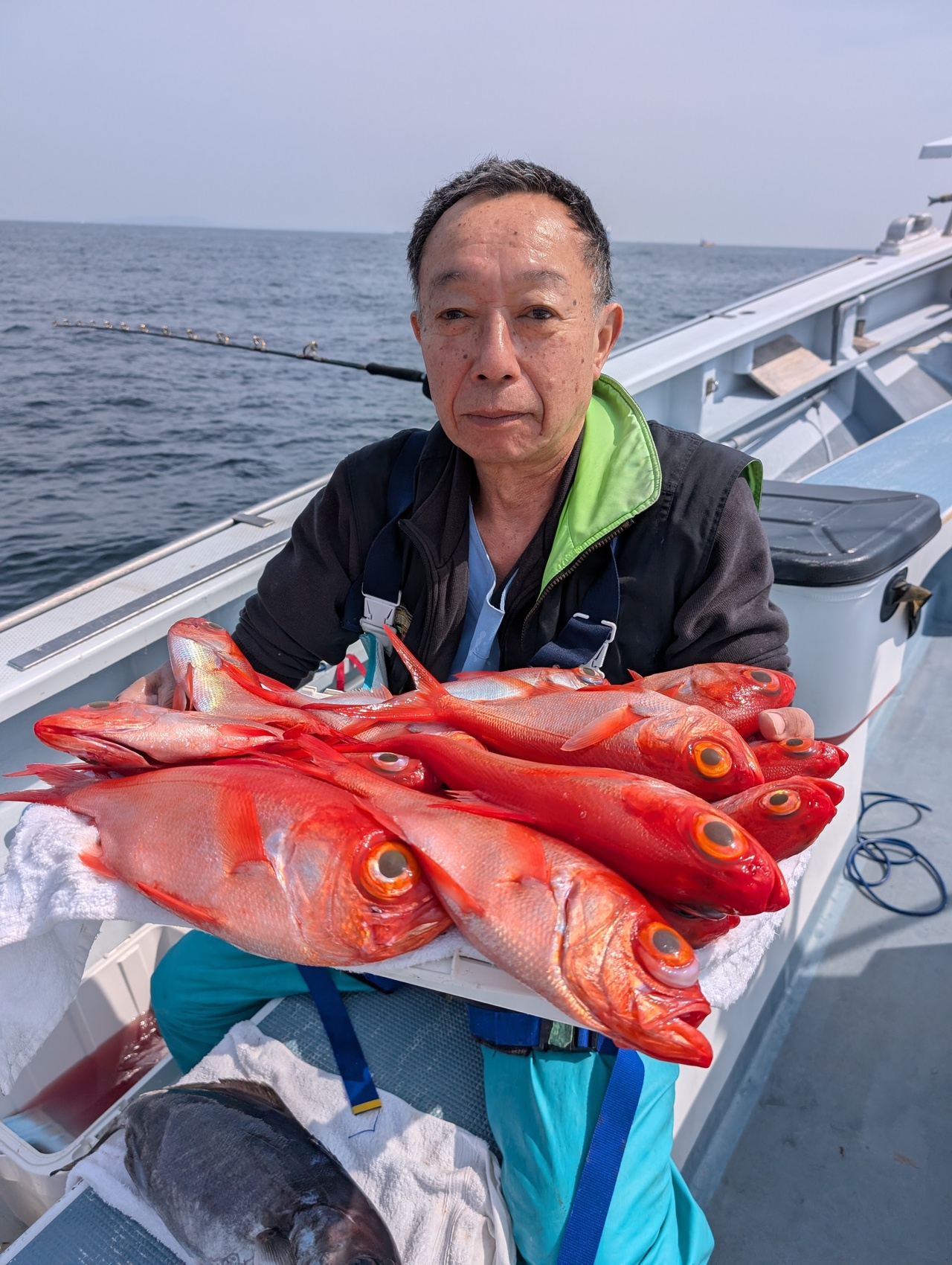 潮濁り、超!!浅場にていい反応みられ良型キンメダイ・メダイ多点掛けで1日ポツポツとあがり、皆さんお土産できました!!