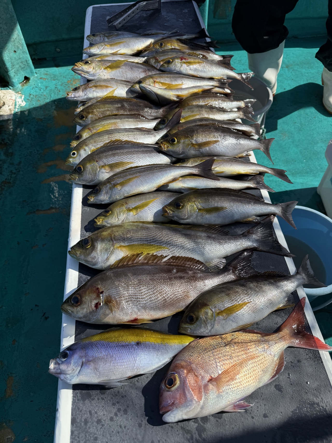 『オキアミ五目イサギ狙いに出船しました、数はそこそこ釣れましたが食い渋かったんで小ぶり多かったです、明日、明後日もオキアミ五目釣り出船します、よろしくお願いします、お疲れ様でした!』